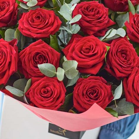Want to make a big impression? You’ll need roses. Two dozen to be precise. That’s why our florists hand-select twenty-four of the finest red roses to create this stunning hand-tied. Best of all? It's hand-delivered perfectly pre-arranged and so it’s ready for it's close up. This is a gift that's going to amaze.