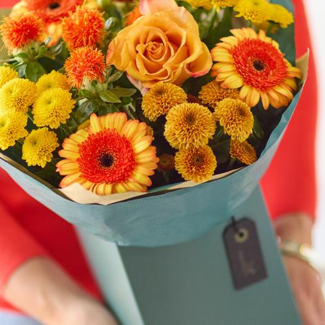 Small but perfectly formed, this classic autumn gift box will feature gorgeous blooms in bright vibrant shades like cerise and sunshine yellow.