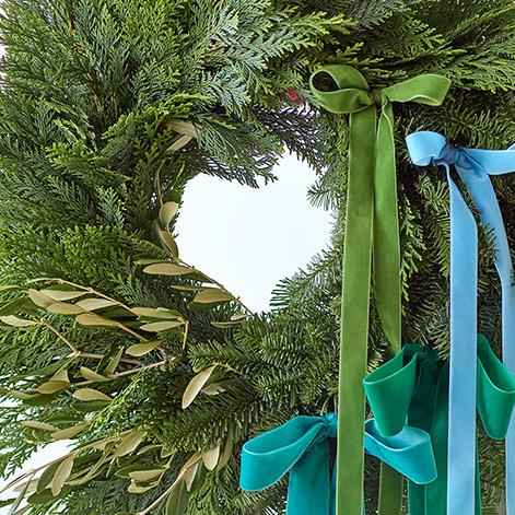 A gorgeous statement wreath inspired by winter's natural beauty and handcrafted by a local florist.