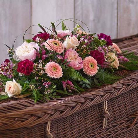 Each and every design is one-of-a-kind, created by us using the freshest stems available on the day so, whilst your casket spray will look different to the one pictured, it’ll still be just as beautiful.