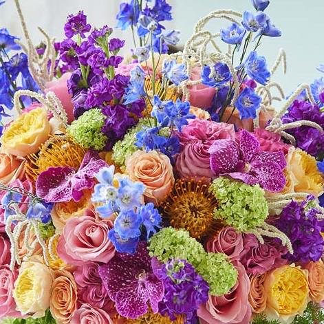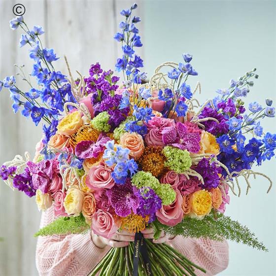 A spectacular display of seasonal blooms, specially chosen by their florist. They'll choose only the freshest, finest flowers and handcraft them into marvel, made just for them.