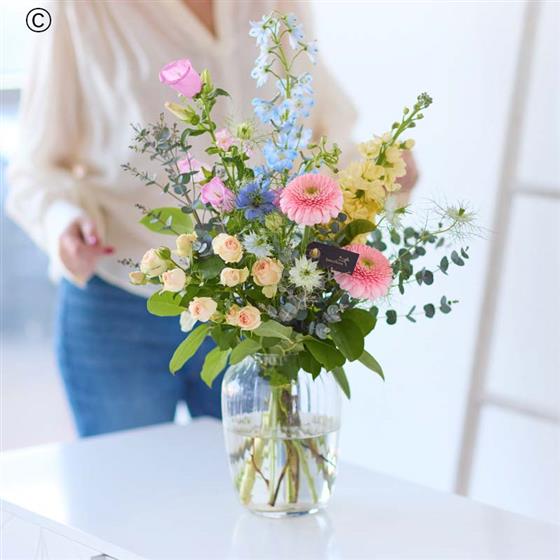 Make sure they don't lift a finger with a gorgeous bouquet already expertly arranged in a vase. The blooms, inspired by the softer shades of the season, will be expertly chosen by the local florist. Expect peach, blush and lemon tones with pops of lilac and cerulean.